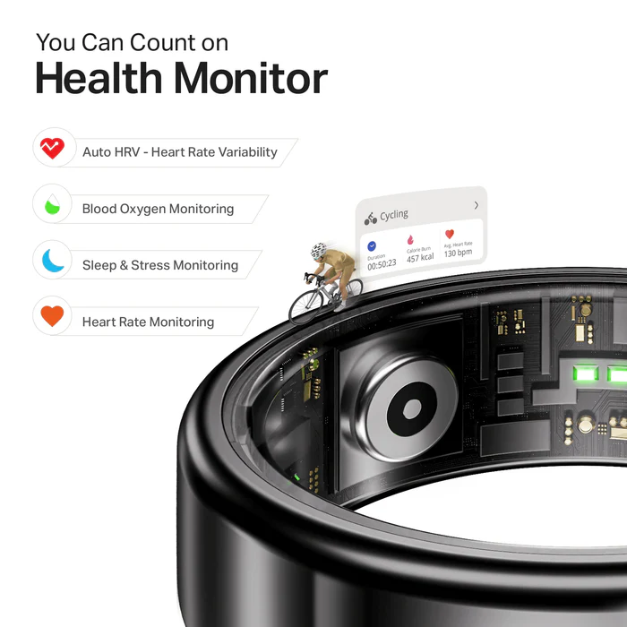 تم تصميم SmartRing Active Plus ليكون جهاز تتبع صحي متكامل، حيث يوفر مراقبة تلقائية لمجموعة من الوظائف الحيوية التي تساعد المستخدمين في تحسين نمط حياتهم، وتشمل: