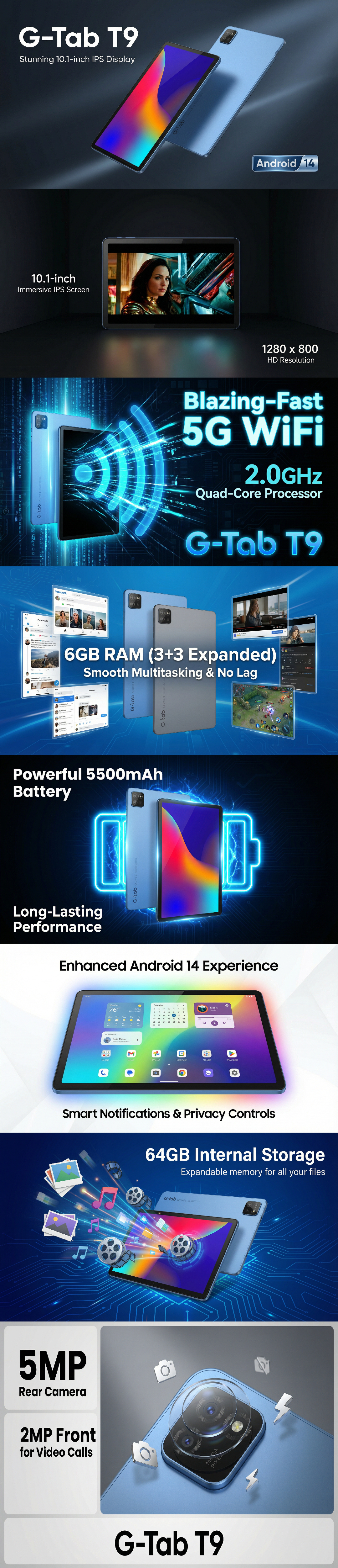 - الشاشة: 10.1 بوصة، دقة 800x1280 IPS، تدعم اللمس المتعدد G+G.